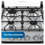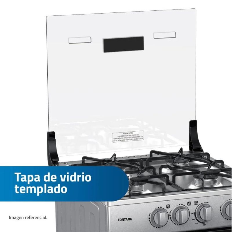 Está fabricado con acero inoxidable, la parrilla esta enlozada, mientras que los quemadores tienen base de Aluminio y tapilla enlozada, y su sistema de alimentación es GLP. Además, el horno tiene una capacidad de 55 litros para hornear sin complicaciones tus recetas favoritas gracias a su controlador de energía.