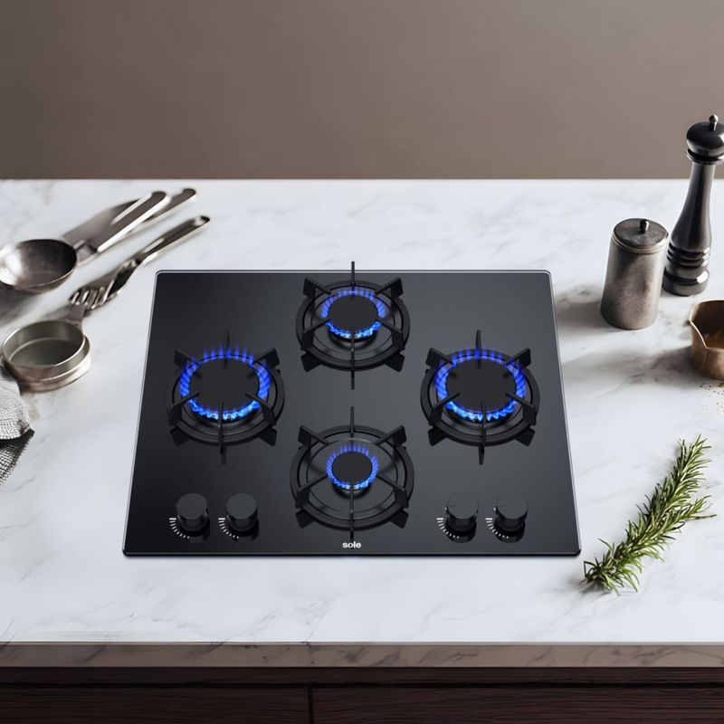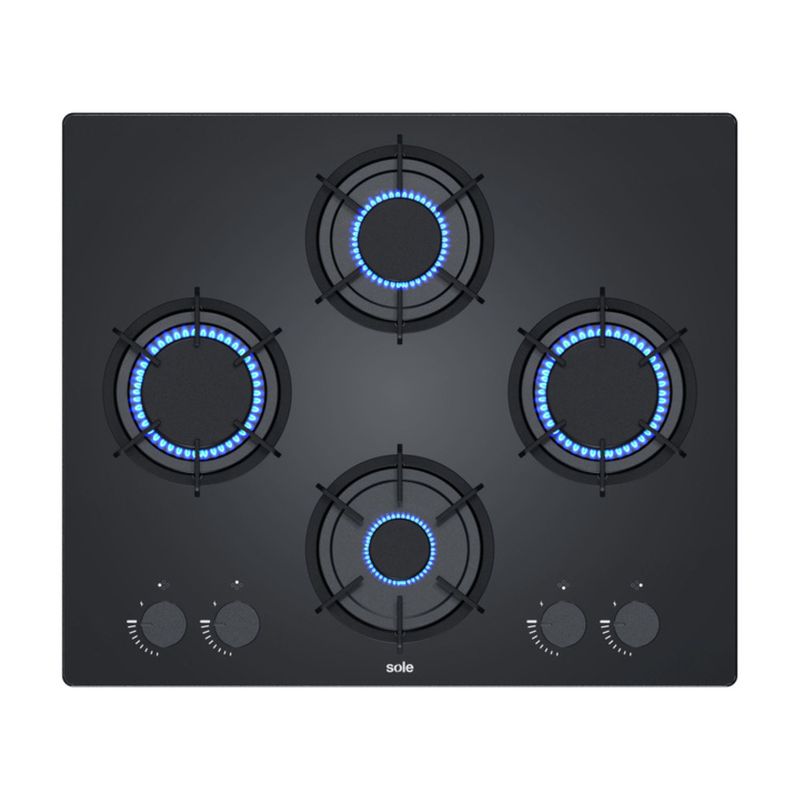 ElectrohogarCocinaCocinas empotrables y encimerasCocina Encimera 60cm Sole Rubí 4 Hornillas Vidrio Templado