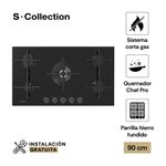 Cocina Encimera Empotrable Sole Scollection Pureblack a Gas Smart 90cm