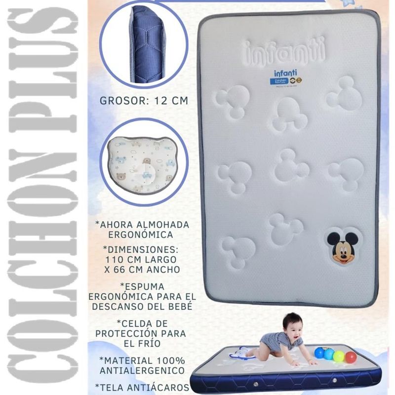 Dale a tu bebe el descanso seguro que el necesita con este colchón que se adapta a tus necesidades. dándole el desarrollo correcto físico. psicológico y emocional. Tiene tela totalmente Anti-ácaros y es 100% antialérgico. Garantízale a tu bebé las más placenteras horas de sueño con este colchón para cunas pack & play de espuma ergonómica de 4 pulgadas de espesor, material 100% antialérgico, INCLUYE Almohada delgada como regalo, Hecho en materiales resistentes y duradero, tela: TRICOTH de 6mm 100% poliéster. Relleno: Espuma densidad 16. Dimensiones: Alto: 110cm Ancho : 10 cm Largo: 66cm. ¿Qué esperas? Consigue este producto ingresando a nuestro portal web. Incluye: 1 Almohada Tipo: Colchones infantiles