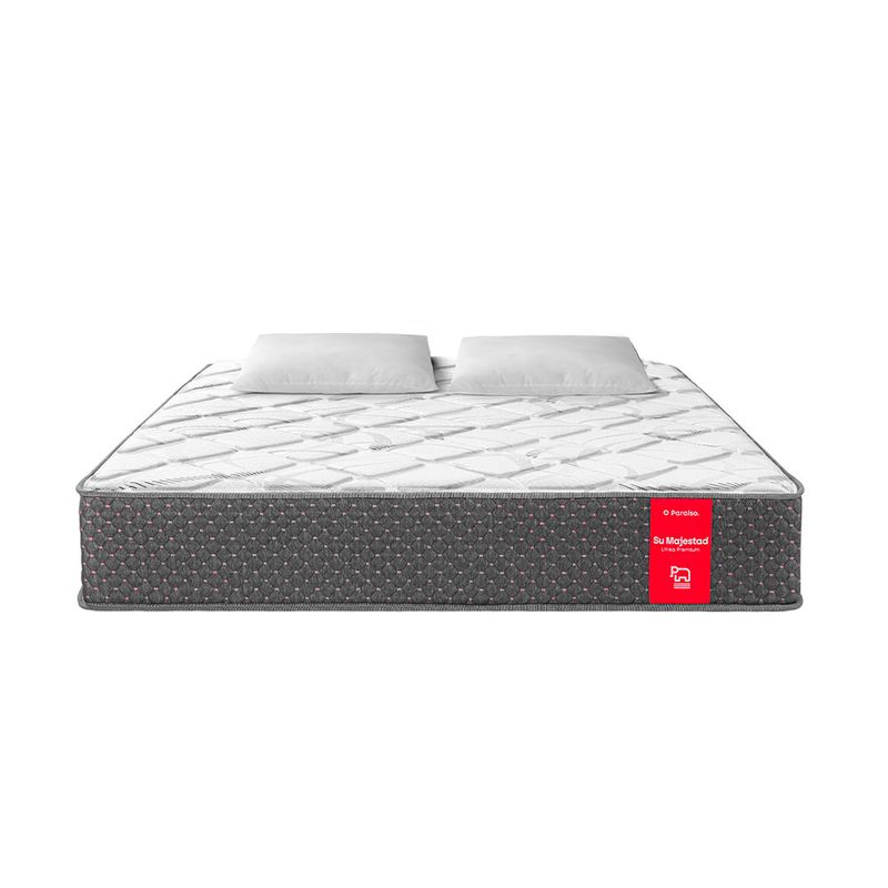 El Colchón Paraíso Su Majestad de Lujo 2 Plazas + 2 almohadas + protector. Su Majestad cuenta con tecnología de resortes Cosisoft que ofrece una mayor estabilidad y buen soporte durante tu descanso, que junto a los marcos de espuma Zebra y la tela Tejido de punto te brinda un descanso insuperable.