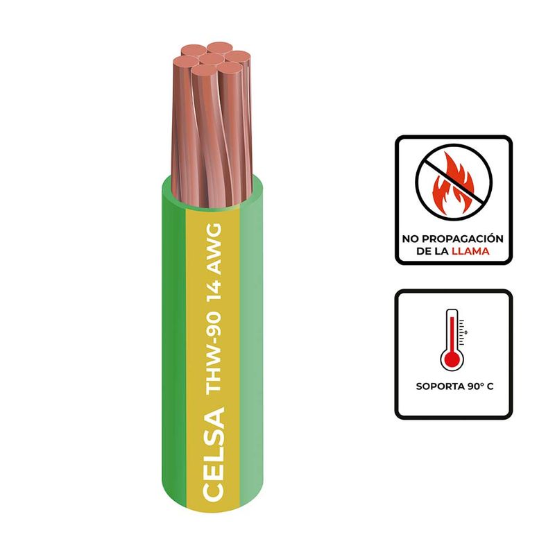 COMBO Cable THW-90 450/750 V 14 AWG Celsa Amarillo/Verde 100m + Cinta Aislante Eléctrica 16mm x 4.5m Negro