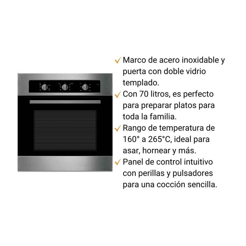 Disfruta de lo mejor de nuestra cocina criolla con este magnífico COMBO de cocina empotrable + campana + horno que Promart trae para ti y tu familia. ¡No esperes más y compra ya!