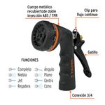 Pistola para Riego de 8 Funciones Metálica con Recubrimiento