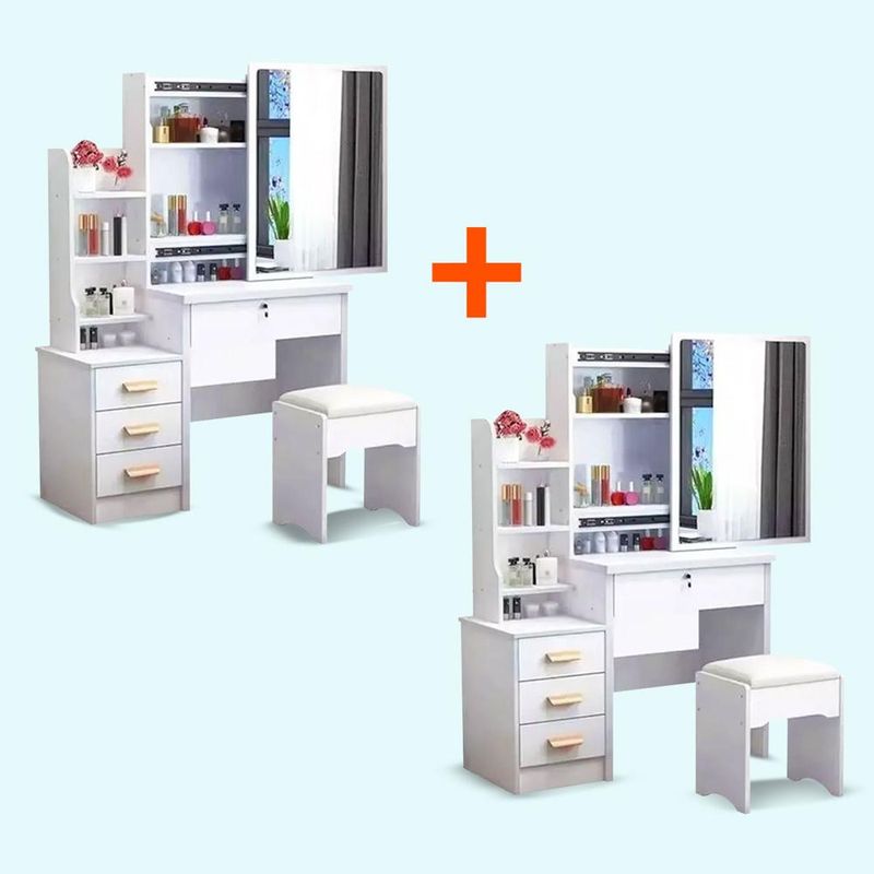 Combo Oferta de 02 Tocadores de Maquillaje Con Espejo Con Taburete Para Dormitorio Blanco de regalo se llevara un Joyero portátil ( colores y diseño variados, se despacha según disponibilidad)