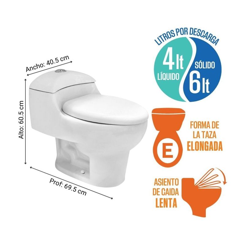 Mejoramiento del HogarGasfiteríaInodoros y AsientosCOMBO Orange: Inodoro one piece Ártico 6L por descarga - Asiento Caída Lenta Blanco + Vanitorio Viena 60cm Blanco
