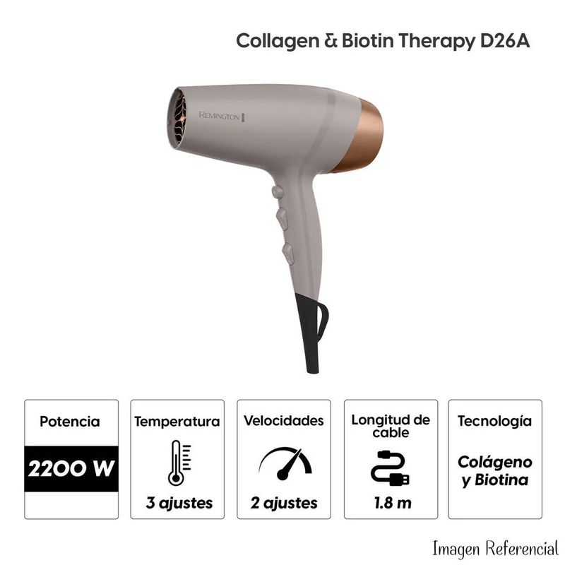 Remington Collagen y Biotin Therapy Un producto que protege tu cabello mientras lo estilizas. Su tecnología de acondicionamiento iónico de turmalina, y su rejilla de cerámica avanzada recubierta con microacondicionador enriquecido con colágeno y biotina, protege y ayuda a la salud del cabello. Suavidad, menos frizz y sin residuos grasos.