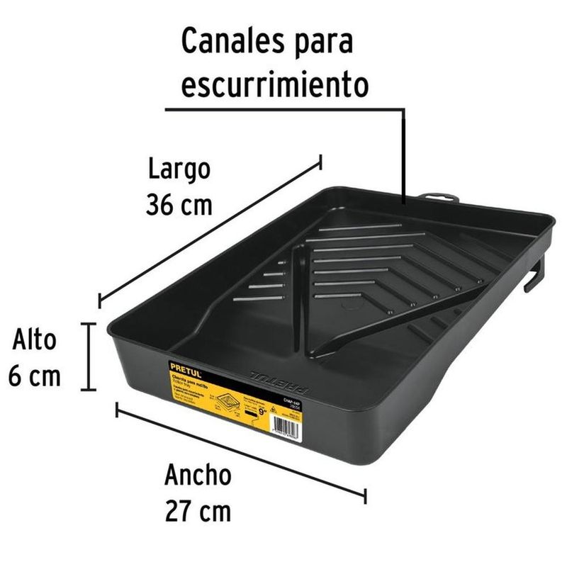 Uso: Esencial para cargar el rodillo de manera fácil y controlada. La bandeja permite dosificar la cantidad exacta de sellador que se va a aplicar, evitando desperdicios y facilitando la aplicación.