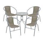 Disfruta a gusto de tu terraza o jardín con este elegante set de terraza + 4 sillas. ¡Lúcete con este set de muebles gracias a realplaza.com!