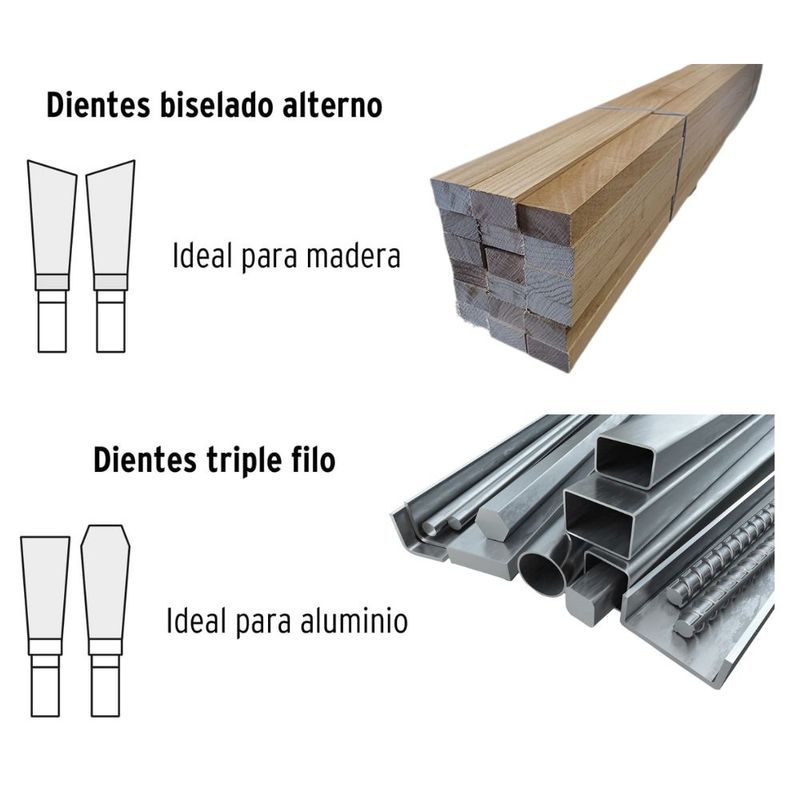 - Incluye 2 disco sierras (madera y aluminio)