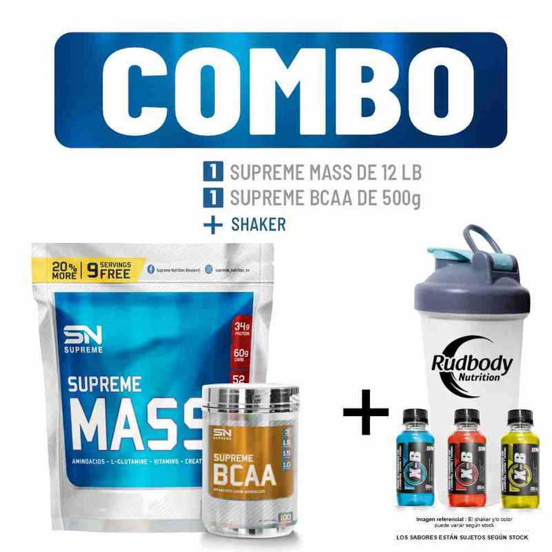 SUPREME MASS con valores nutricionales de diversas fuentes proteicas de alta calidad, derivado del suero de leche, albúmina de huevo, proteína aislada de soya y carbohidratos. SUPREME MASS cuenta con una concentración de aminoácidos de cadena ramificada “BCAA” y además de una generosa cantidad de CREATINA Y L-GLUTAMINA.