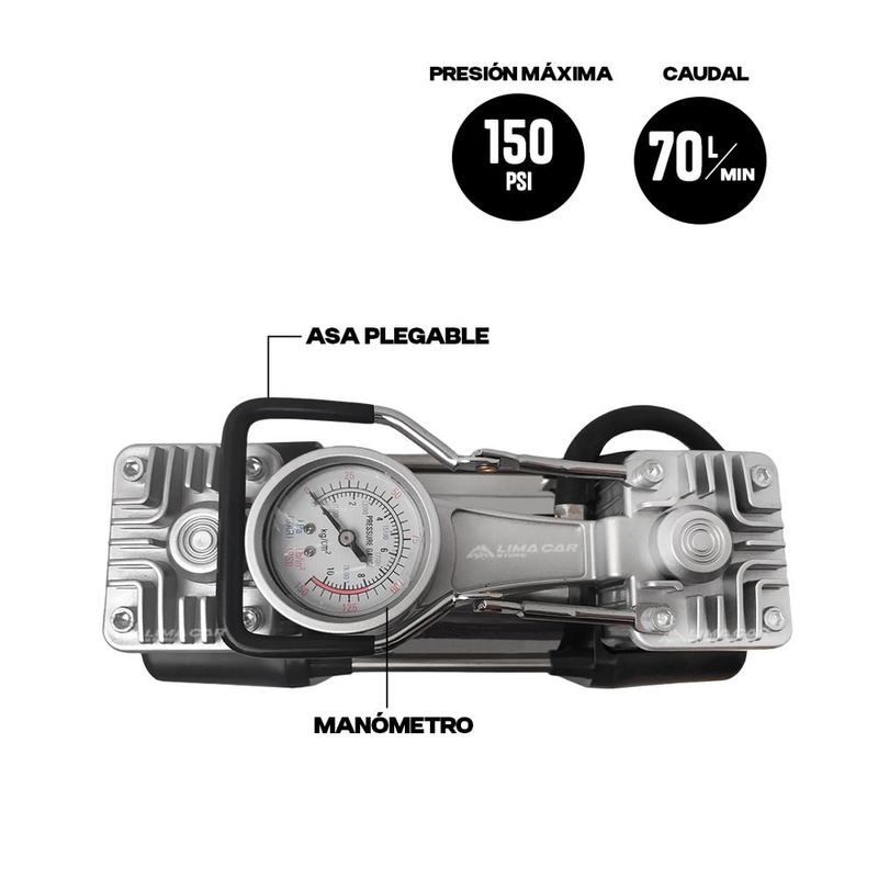 - Incluye: Maleta, Kit de herramientas, Manual y 3 adaptadores/boquilla para inflables