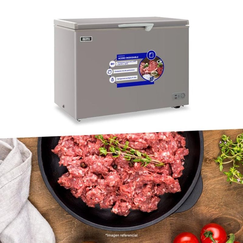 El congelador dual Ilumi de 220 litros representa una solución de almacenamiento avanzada y segura para diversas necesidades. Este sofisticado equipo ofrece una temperatura dual ajustable, que oscila entre 10°C y -22°C, proporcionando un entorno óptimo para la conservación de una amplia variedad de productos congelados. Con un cierre hermético y una chapa con llave, garantiza la seguridad y la integridad de los alimentos almacenados. Además, incluye dos canastillas, que facilitan la organización interna y el acceso rápido a los artículos. Su diseño elegante y su funcionalidad hacen del congelador dual Ilumi una adición imprescindible para cualquier hogar o negocio que valore la calidad y la eficiencia en el almacenamiento de alimentos.
