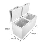 Además, la congeladora CI-420BL está equipada con ruedas multidireccionales, lo que facilita su movimiento y posicionamiento en la cocina. También cuenta con una llave de seguridad, brindando tranquilidad al mantener tus alimentos congelados de manera segura.