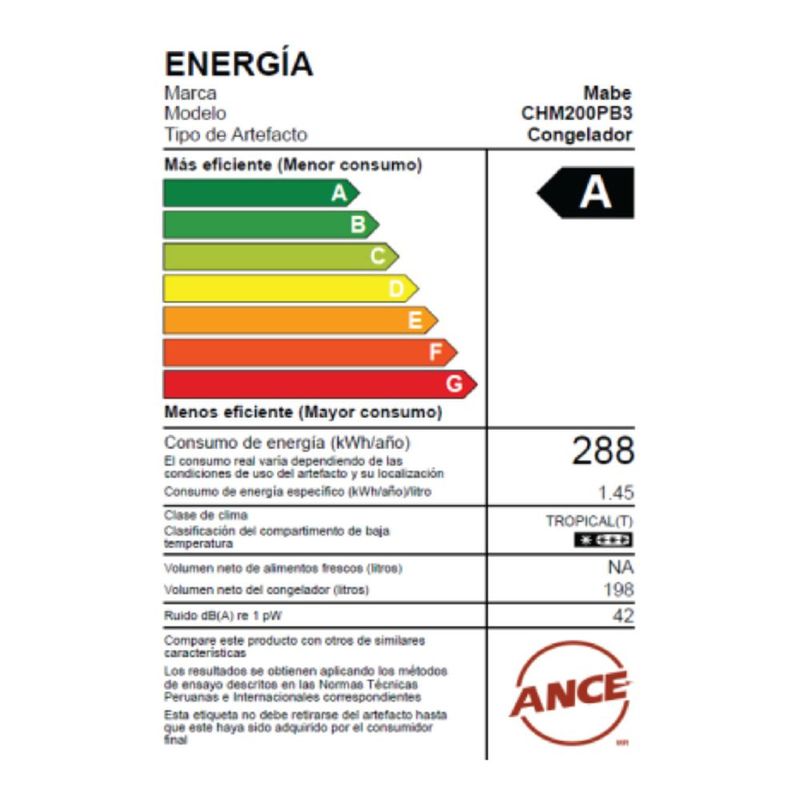 ElectrohogarRefrigeraciónCongeladorasCongelador Mabe 198 L Frost CHM200PB3 Blanco