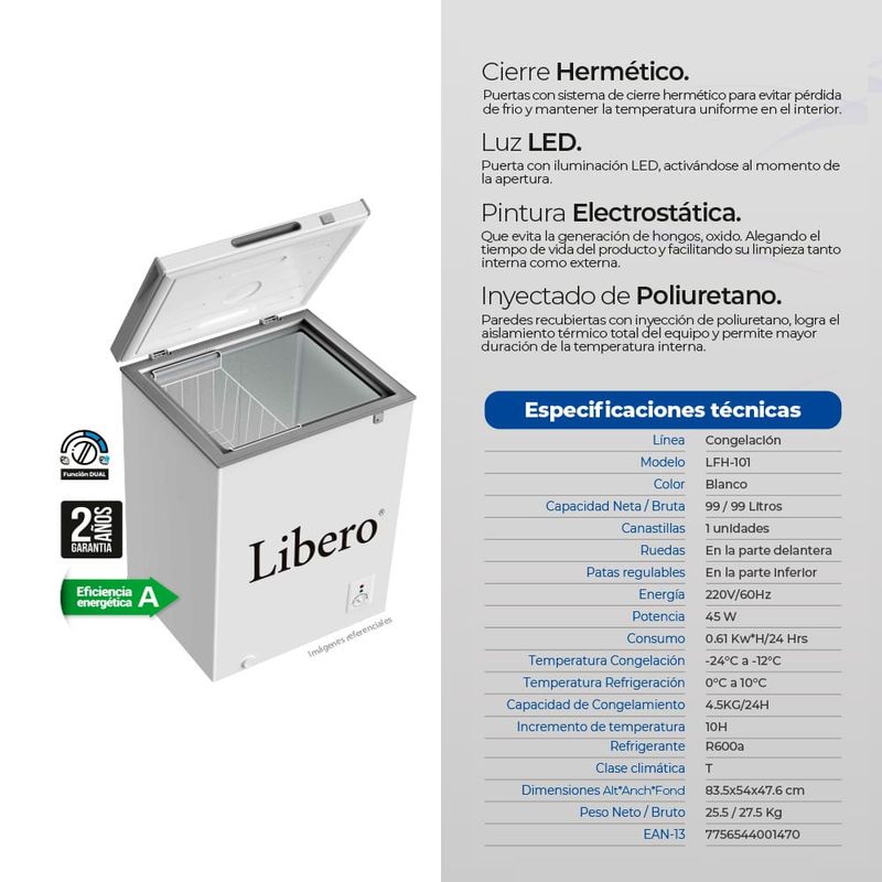 Mantén una mayor cantidad de alimentos en perfecto estado con esta increíble congeladora. Será perfecta para tu negocio u hogar. Allí podrás almacenar todo tipo de productos con total comodidad.