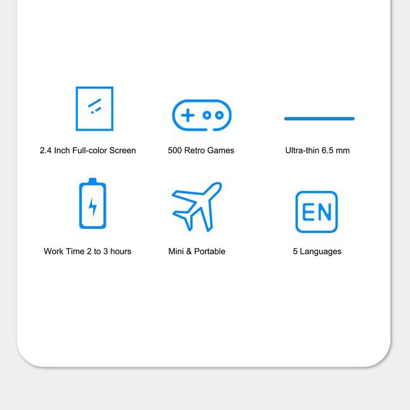 Descripción general:Esta computadora de mano La consola de juegos es pequeña y liviana, lo que la hace ideal para usar mientras viaja. Equipada con una batería de 400 mAh, la pantalla a color de 2,4 pulgadas garantiza una buena experiencia visual.