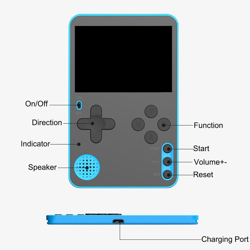Consola de juegos portátil K10 con pantalla a todo color de 2,4 pulgadas y 500 consolas de juegos portátiles de juegos retro, batería recargable de 400 mAh (azul)