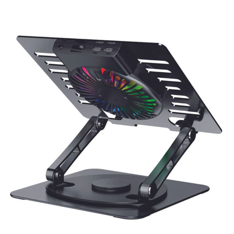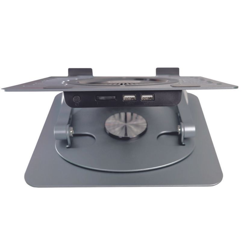 Está equipado con un potente ventilador central de 11 cm, que genera un flujo de aire constante y silencioso, permitiendo disipar eficazmente el calor acumulado en la base del portátil. Gracias a su diseño de rejilla metálica perforada, el aire circula libremente, mejorando el enfriamiento y evitando sobrecalentamientos que puedan afectar el desempeño del equipo.