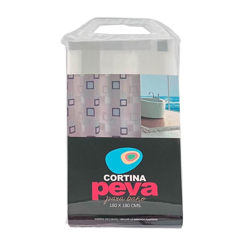 Cortina de Baño con Aros Pitukasa 180x180cm Peva Cuadros Azul