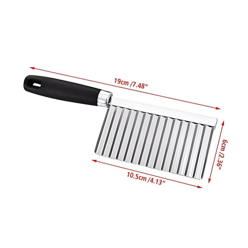 Descubre la versatilidad en la cocina con nuestro Cuchillo Ondulado para Papas Fritas y Vegetales de Acero Inoxidable. Este utensilio está diseñado para facilitar la preparación de tus alimentos favoritos, ofreciendo precisión y eficiencia en cada corte.