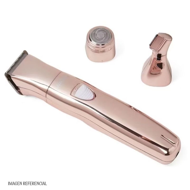 Afeitadora recargable Pure Confidence es un kit de aseo personal todo en uno para mujeres'. Cuenta con tres cabezales intercambiables para máxima versatilidad, un cabezal de corte de precisión para una depilación rápida y fácil, un cabezal de precisión para el corte de cejas y vello facial, y un cabezal de afeitado giratorio para un afeitado de acabado apurado para áreas de axilas y bikini suaves.