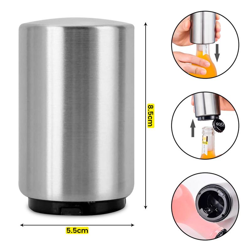 - El diseño de fácil acción de este abrebotellas a presión, sin girar la muñeca, puede convertirte en un camarero automático.