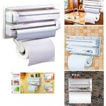 Porta rollo para cocina, ideal para organizar y usar los papeles de cocina y especias, optimizar espacio y decorar. Tiene tres compartimentos para guardar. Es fácil de limpiar e instalar ya que se puede colgar y descolgar fácilmente. Resistente a la humedad.