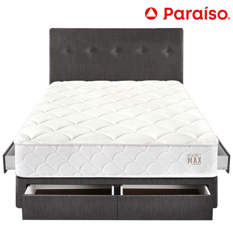 Dormitorio 4 Cajones PARAISO Pocket Max Charcoal 2 Plz + 2 Almohadas + Protector