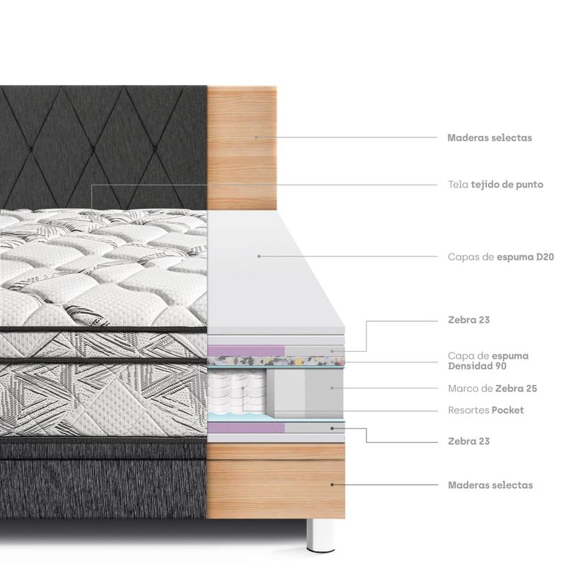 Buscas el descanso soñado y renovar tu habitación con Dormitorio Boxet Pocket Advance Queen Charcoal Adquiérelo solo en realplaza.com ¡Ingresa aquí!