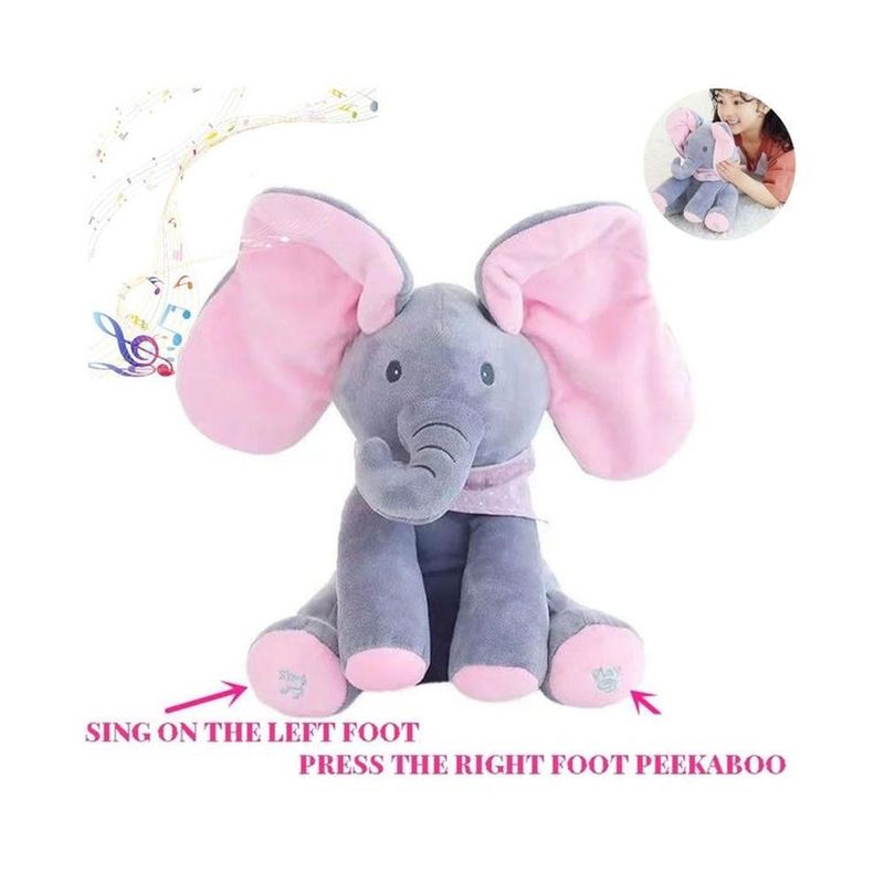 Elefante Interactivo Musical de Peluche Gris Rosa con Orejas que se Mueven