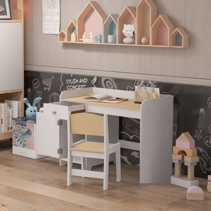 Escritorio Infantil Oishi Blanco y Carvalo - Muebles Bonno