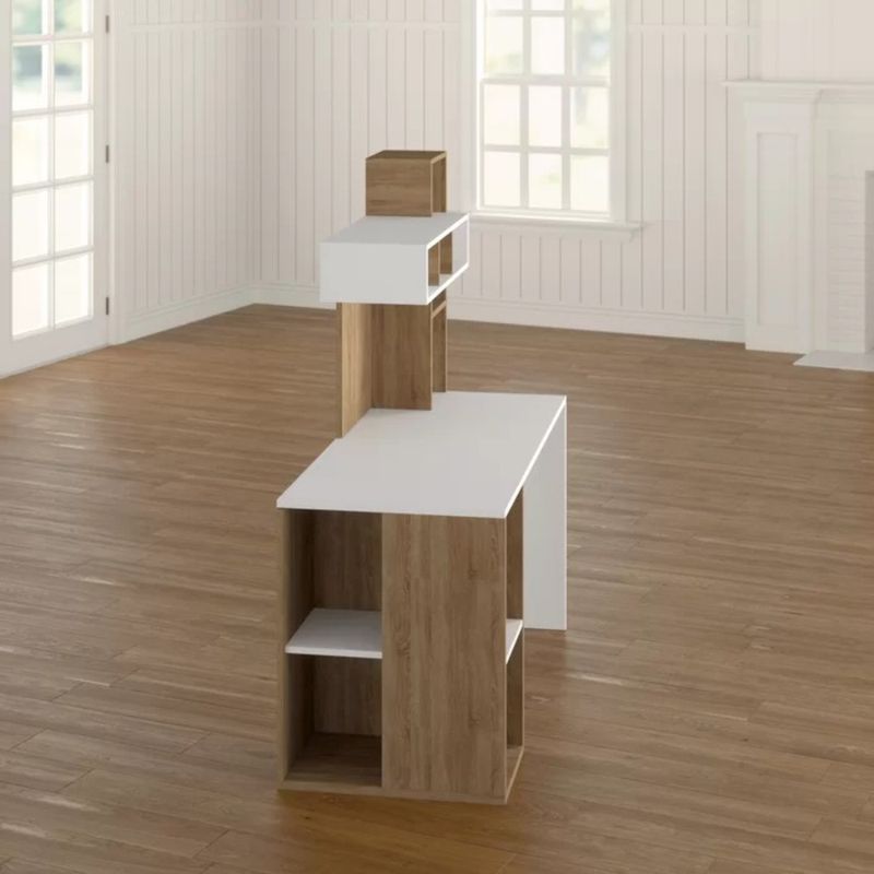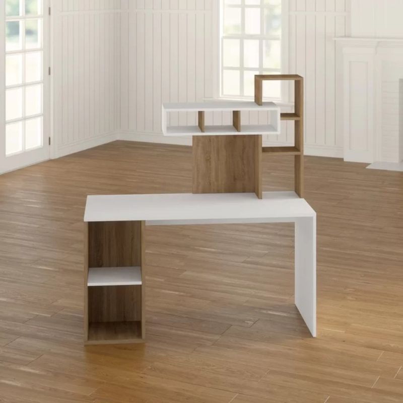 -Escritorio Modernoo con estantes para colocar libros. color: Blanco/Marrón y Estructura: Melamine 18mm