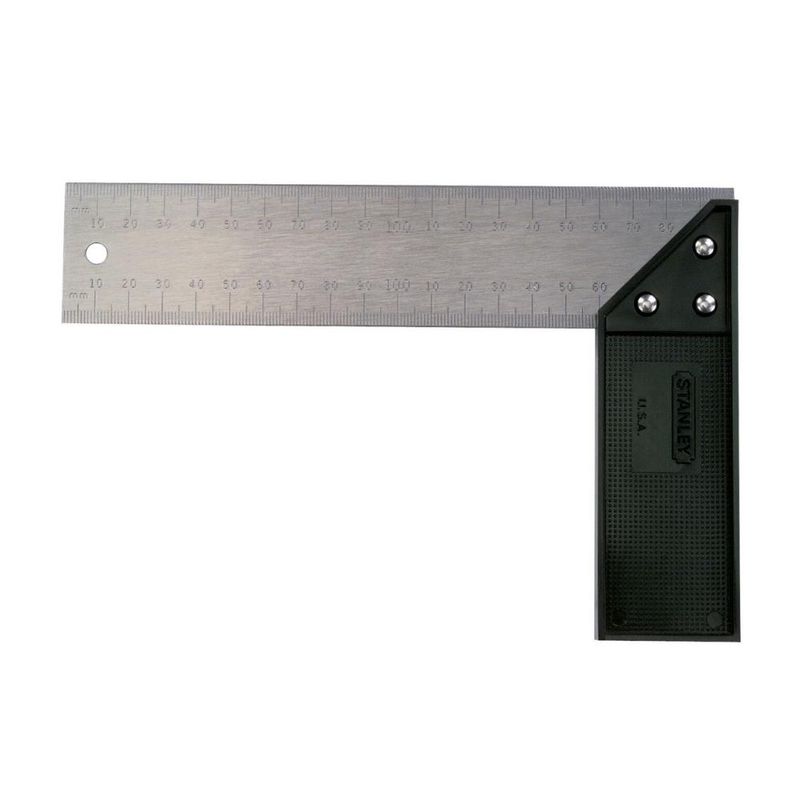 Escuadra con mango de plástico y acabado de laca para resistir la corrosión.