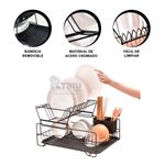 El escurridor de platos de 2 niveles con bandeja es una adición esencial para cualquier cocina que busca combinar eficiencia y estilo. Con su diseño de doble nivel, ofrece un amplio espacio para secar platos, tazas y utensilios, mientras que la bandeja integrada recoge el exceso de agua para mantener la encimera limpia y seca. Su estructura facilita una organización ordenada, permitiendo un fácil acceso a tus vajillas recién lavadas. Perfecto para optimizar el espacio y mantener la cocina impecable, este escurridor es una solución práctica y elegante para el hogar moderno. Observaciones adicionales: las fotografías y descripción del producto son referenciales. Producto sujeto a stock de colores. Garantía: 7 días por daños de fábrica. El Modelo de los(el) regalo(s) está sujeto a disponibilidad de stock y colores.