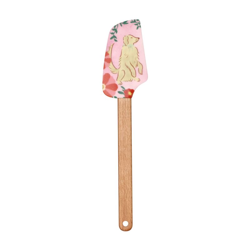 Espátula de silicona con mango de madera haya con diseño estampado para repostería.
