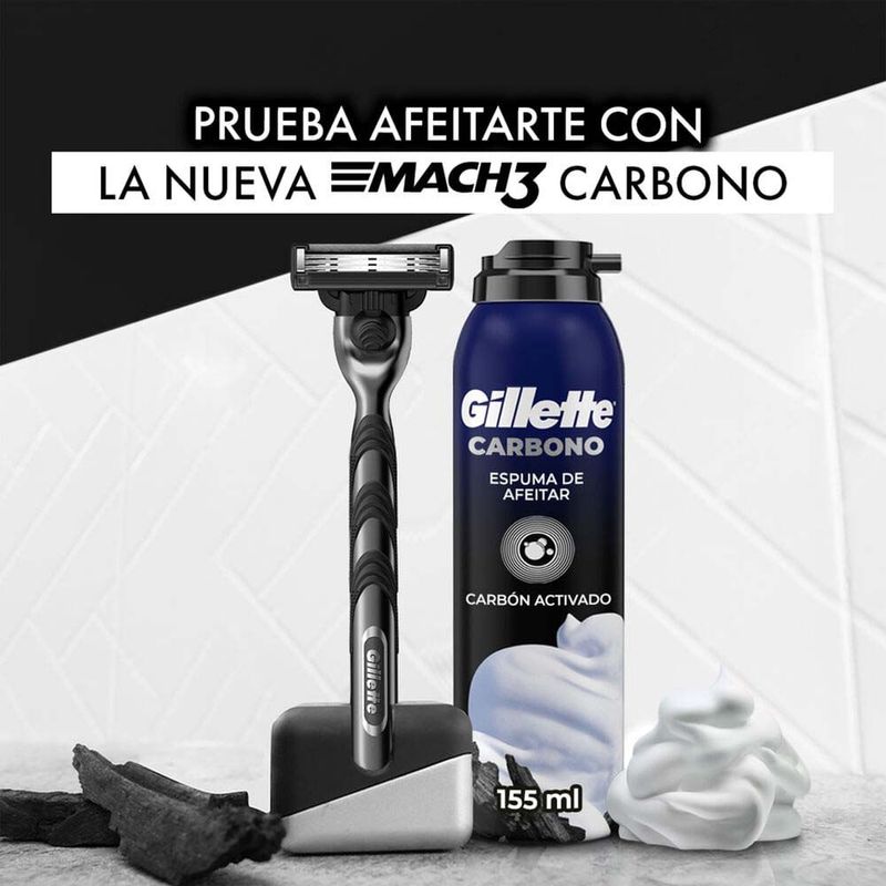 Espuma de Afeitar GILLETTE Carbono con Carbón Activado para Mayor Limpieza Frasco 155ml