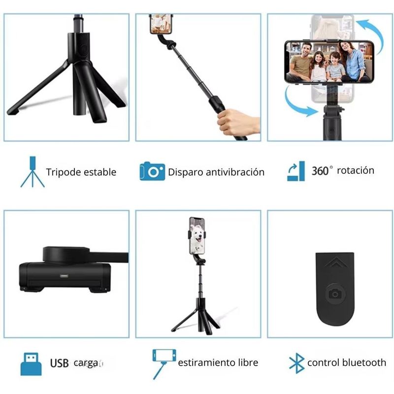 Modo Trípode Incorporado: Convierte el palo selfie en un trípode estable de manera rápida.