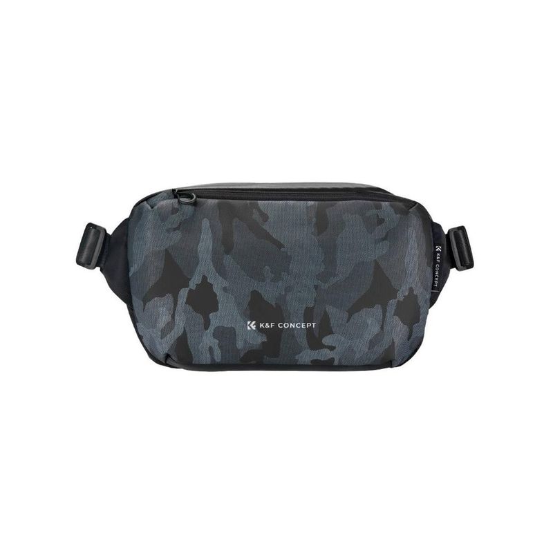 La bandolera Alpha para cámara de 10 litros de K&F Concept ofrece espacio para una cámara y dos objetivos. Se puede llevar al hombro, a la cintura o cruzada.