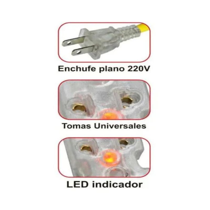 -LONGITUD DE CABLE 03 Metros TOMACORRIENTE 3 Tomacorrientes: 2 polos universal + línea tierra(no conectada)