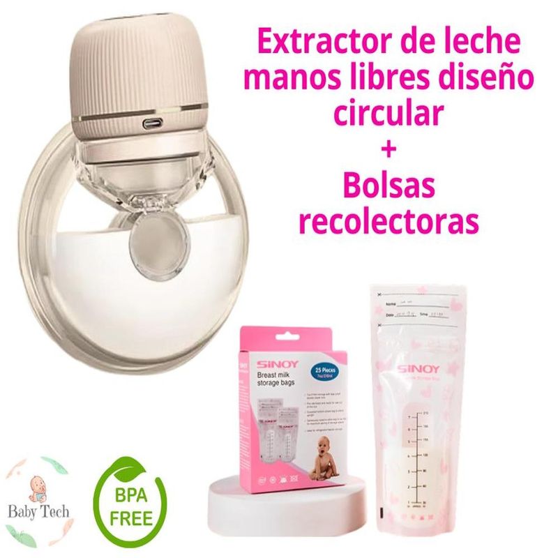 Brinda una lactancia materna exclusiva a tu bebé y arma tu banco de leche gracias a nuestro extractor de leche manos libres diseño circular + 25 bolsas almacenadoras de leche.