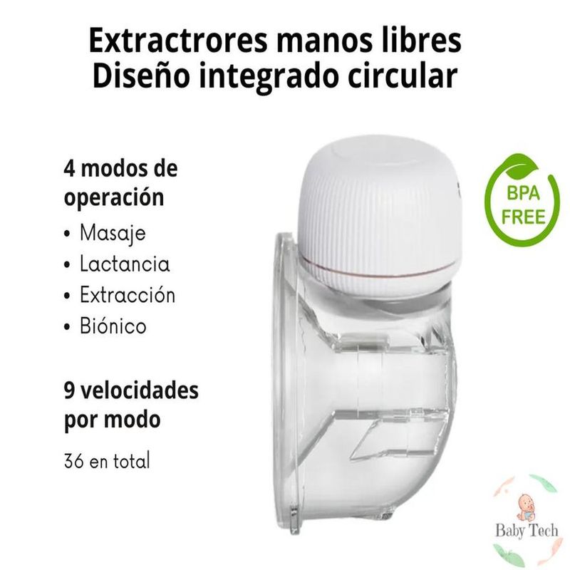 Extractor de Leche Manos Libres Diseño Circular Bolsas
