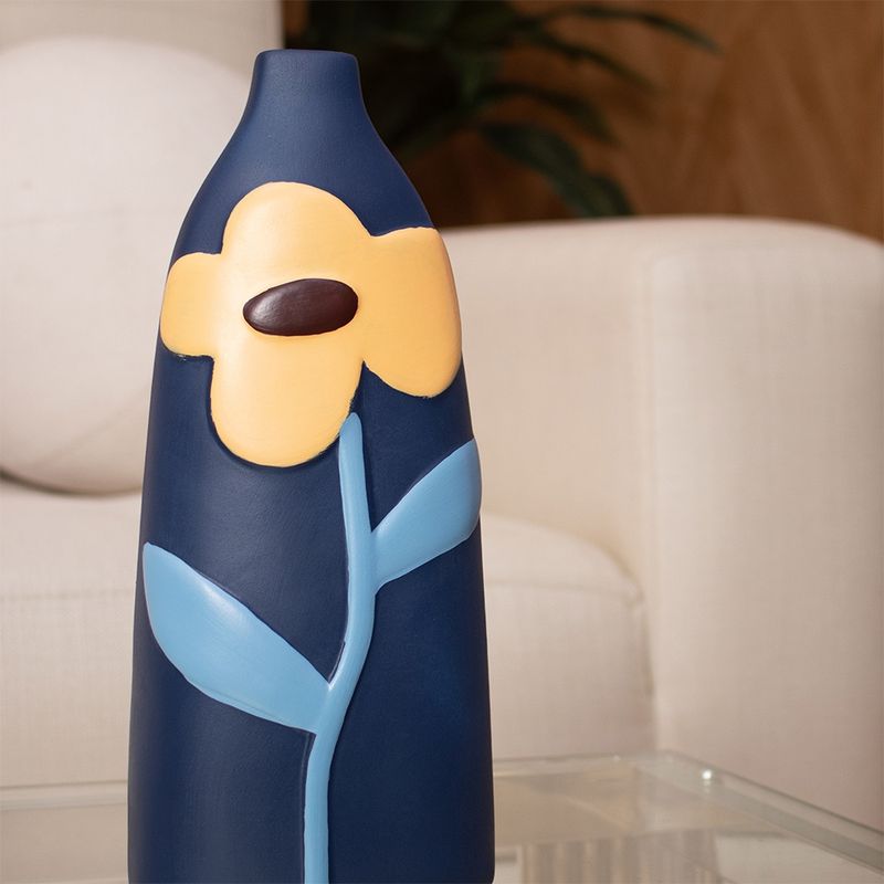 El Florero Azul con Flor Amarilla de 21 cm destaca por su diseño artístico y colorido. Su cuerpo azul profundo con una flor en relieve lo convierte en una pieza decorativa alegre y moderna, perfecta para ambientes con estilo contemporáneo o artístico.