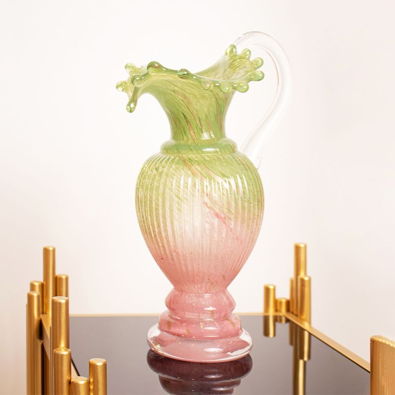 Florero Panadecor de Vidrio Estilo Murano Degradado Verde y Rosa 33CM