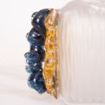 - Colores predominantes: Transparente con relieves en ámbar y azul