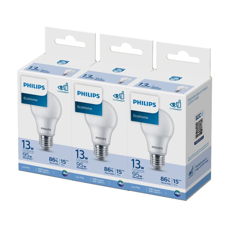 Foco LED Philips Ecohome E27 13W Luz Fría - 3 unidades