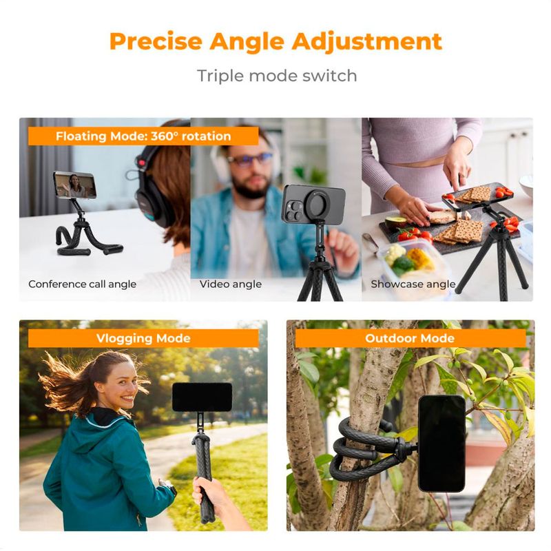 Puede disparar horizontalmente, verticalmente, hacia abajo y hacia arriba, y es adecuado para disparos con cámara en mano, disparos al aire libre, disparos de viajes, fotos grupales, transmisiones en vivo, vlogs, etc.