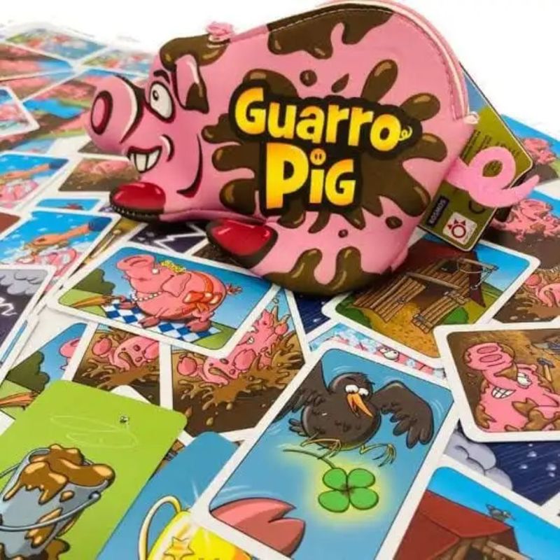 “Guarro Pig” es un juego de cartas, de 2 a 6 participantes, en donde tu principal misión será que tus cerdos acaben lo más sucios y embarrados que puedan. ¡Dónde se ha visto un cerdo limpio y reluciente! Por eso, estos cerdos buscarán, por encima de todas las cosas, volver a ensuciarse y mancharse con el barro. Juega tus cartas y consigue tus cerdos se ensucien antes que los de los demás y, si puedes, limpia los cerdos de tus rivales…