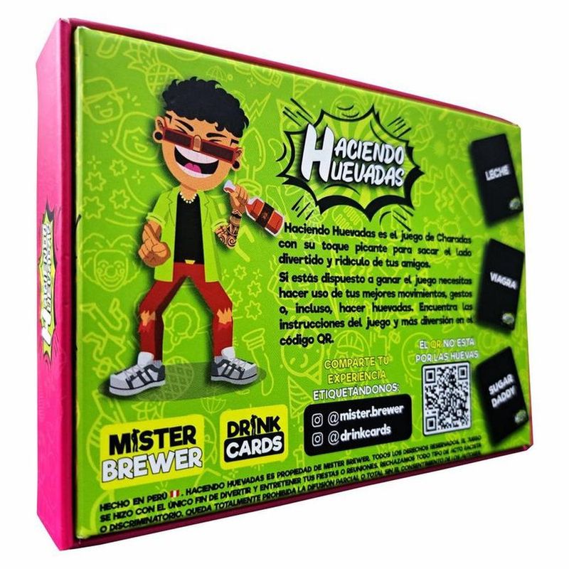 Haciendo Huevadas es el clásico Juego de Charadas para una reu divertida, en donde deberás actuar para que tus amigos adivinen la palabra secreta, ahora con su toque picante para sacar el lado ridículo y divertido de tus amigos. El juego contiene 112 cartas plastificadas, se puede jugar con 2 o más jugadores.