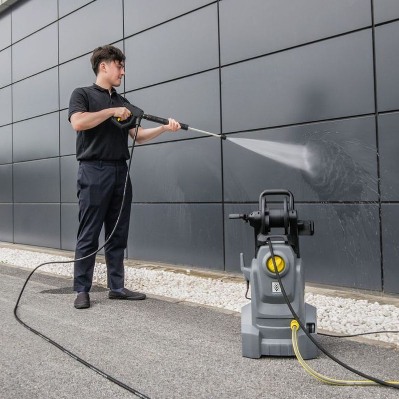 La hidrolavadora HD 4/10 X Classic ofrece un caudal de 400 l/h y una presión de hasta 145 bar. Se destaca por su ligereza, facilidad de transporte y montaje rápido. Incluye accesorios profesionales de alta calidad, como una pistola Classic ergonómica y cómoda, una lanza de acero inoxidable de 600 mm, una manguera de nailon de 8 m y una boquilla en abanico. Además, facilita su organización con un carrete de manguera y un soporte para los accesorios.
